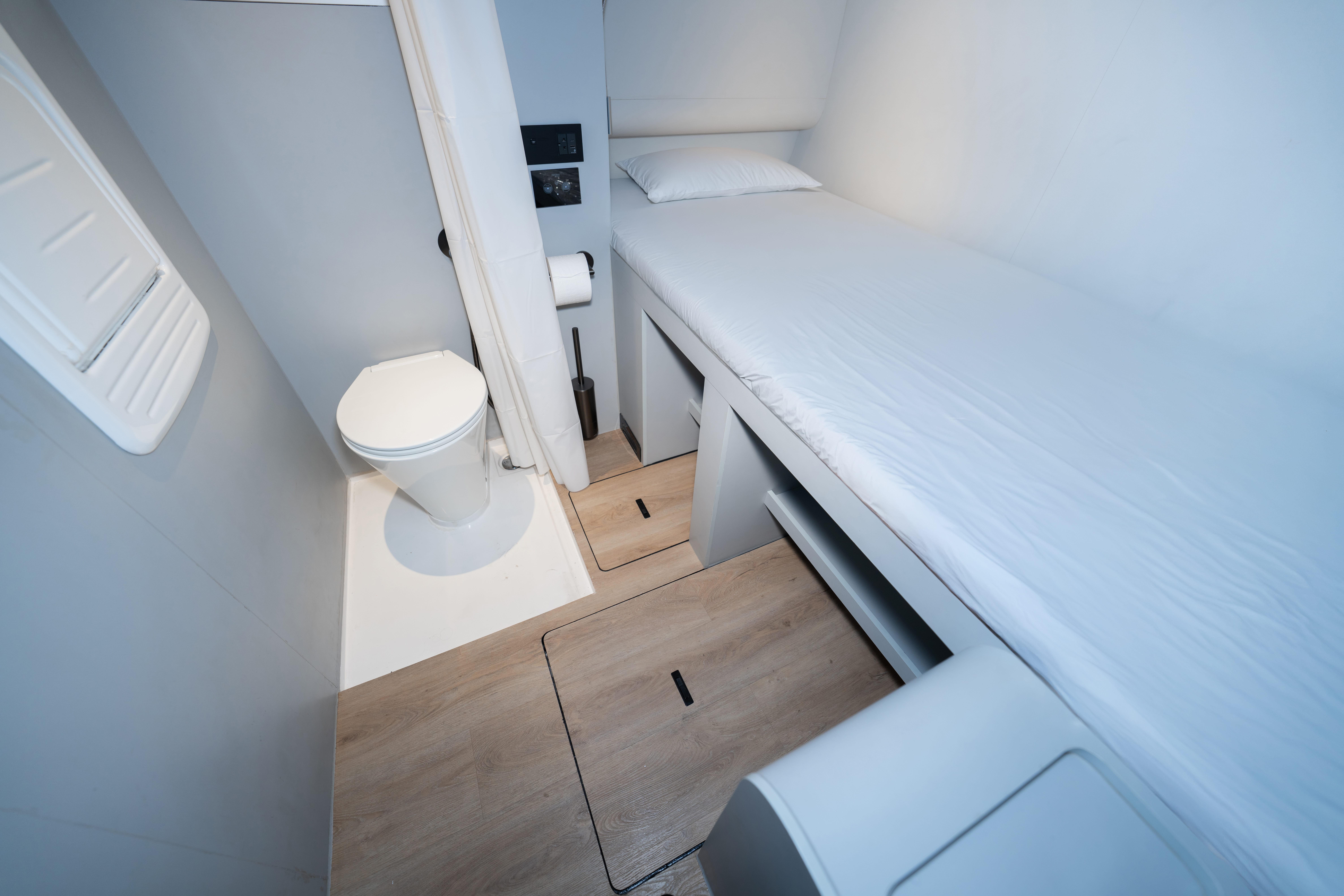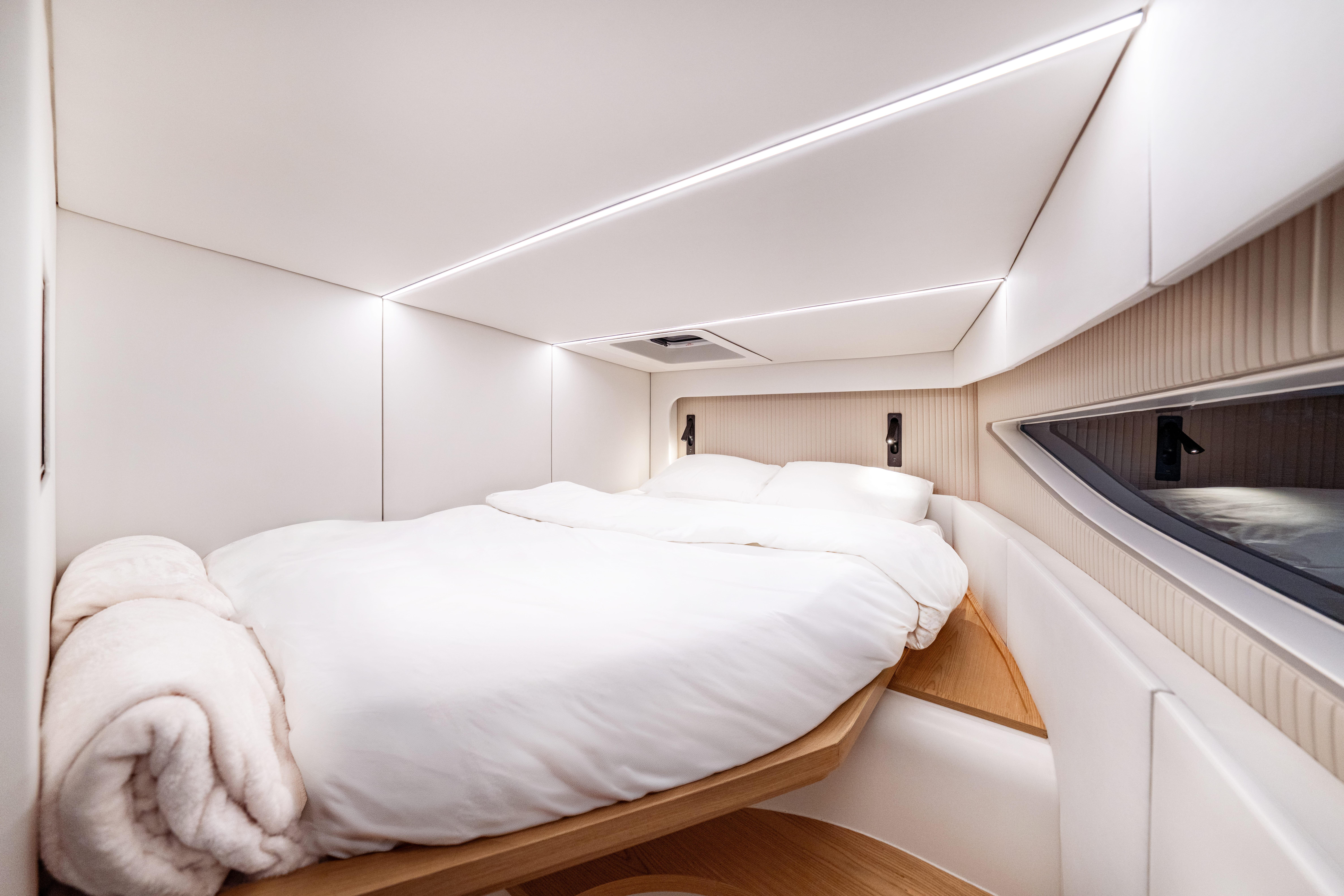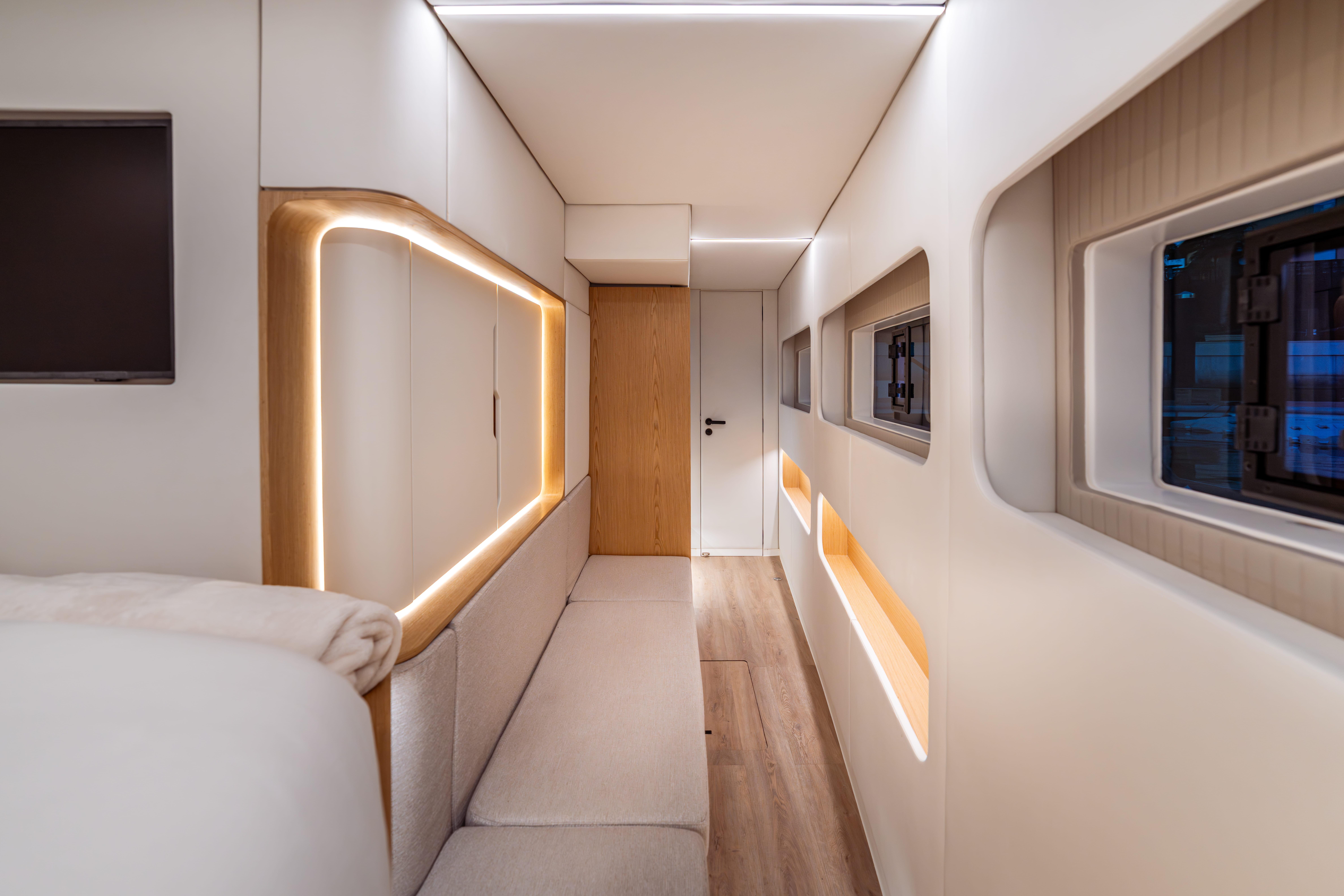 Ultralight, thin, and flexible solar panels are discreetly integrated into the structure, supporting onboard systems and reducing generator reliance. The result is a yacht that feels both progressive and practical โ€” ideal for owners seeking a forward-thinking, low-consumption platform without compromising on comfort or style.