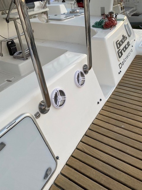 2x JBL Wake Tower Speakers added to Mast Spreader New Oct 2023