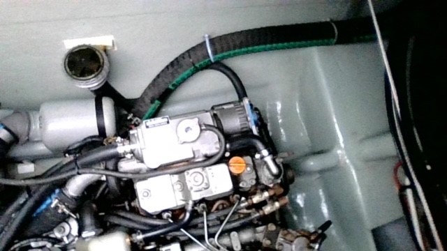 Visual inspection of both engines found no evidence of leaks, damage, or corrosion. Where accessible the engine mounts as well as the sail drive attachments to the hulls were in good condition and secure with no evidence of corrosion or damage. The exhaust systems for both engines were intact with all hose fittings secure and no signs of leaks.