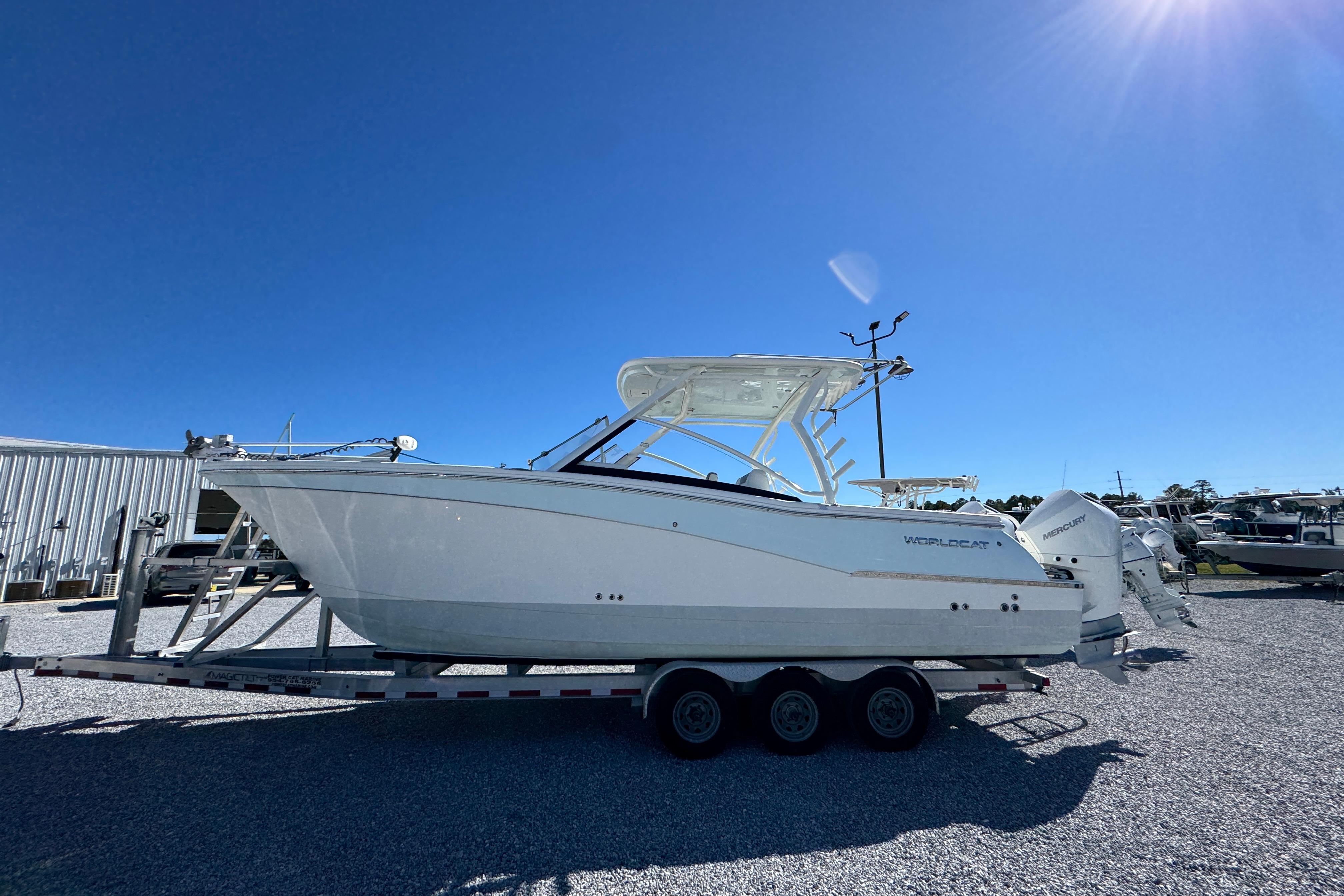 2021 World Cat 280DC powered by Twin Mercury 200 V6's with ONLY 240 Hours! Trailer Included With Purchase! Highlighted features of this boat are listed below: