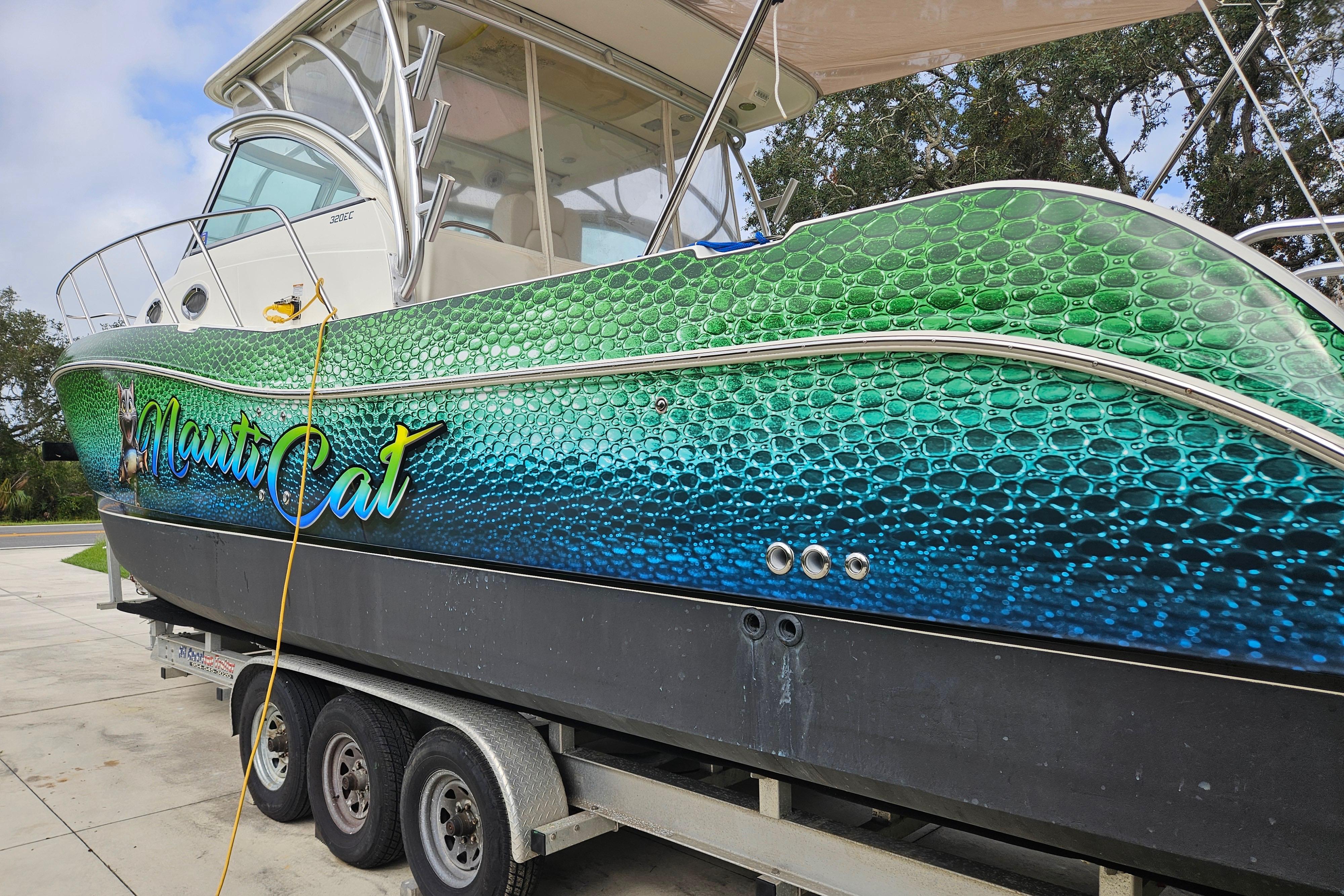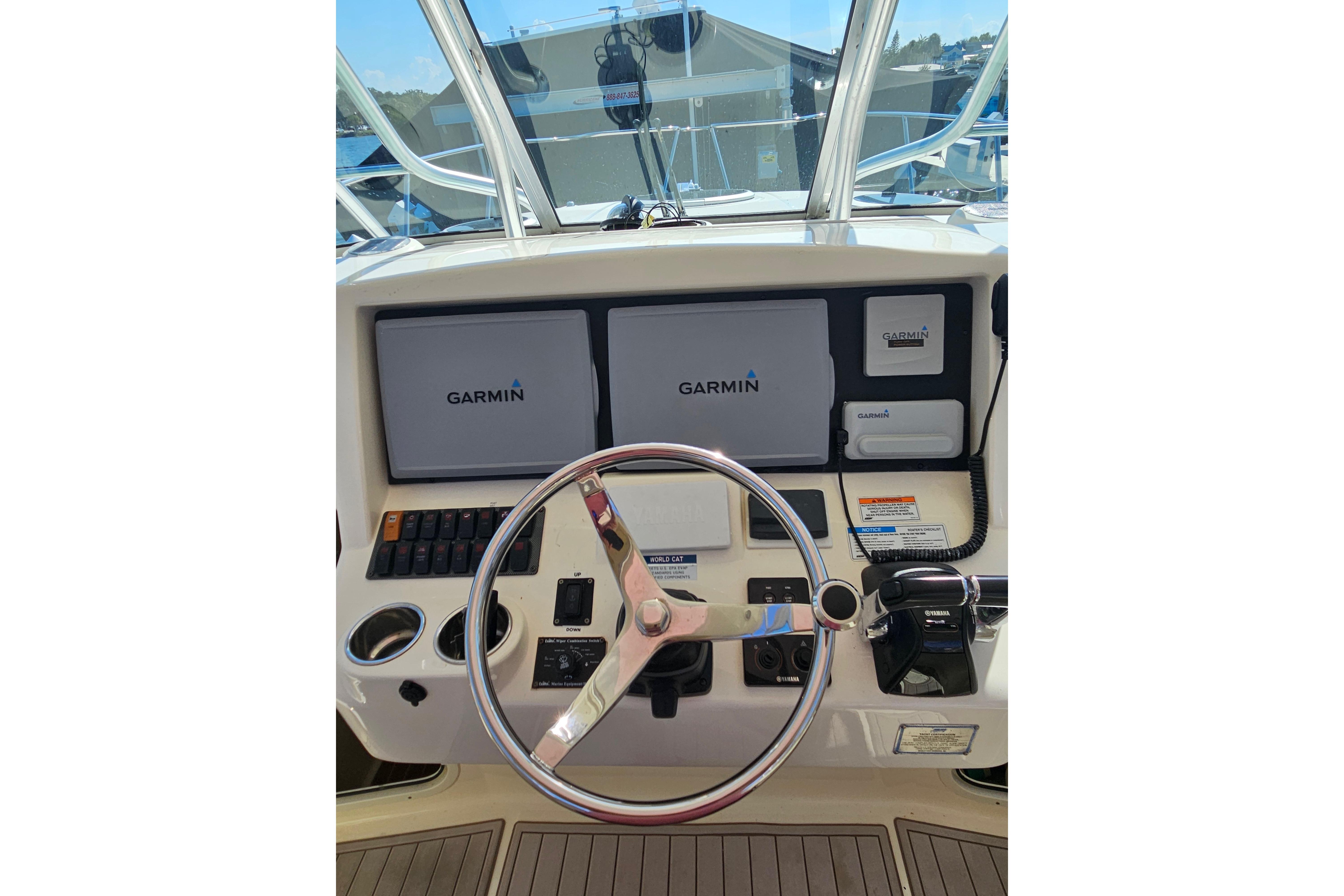 Introducing the stunning 2014 World Cat 320 EC, a remarkable power catamaran that combines performance and comfort. With an overall length of 32 feet, this vessel is crafted from durable fiberglass, ensuring both strength and stability on the water. The sleek catamaran shape enhances its agility, making it perfect for cruising. Powered by twin Yamaha F300XCA outboard engines, each delivering an impressive 300 horsepower, the NautiCat achieves a cruising speed of 30 mph and a maximum hull speed of 46 mph, providing exhilarating experiences on the open water. Accommodations include a cozy cabin and a well-appointed head, ensuring comfort during your journeys. NautiCat is designed for those who appreciate quality and performance, making it an ideal choice for both leisurely outings and adventurous excursions.