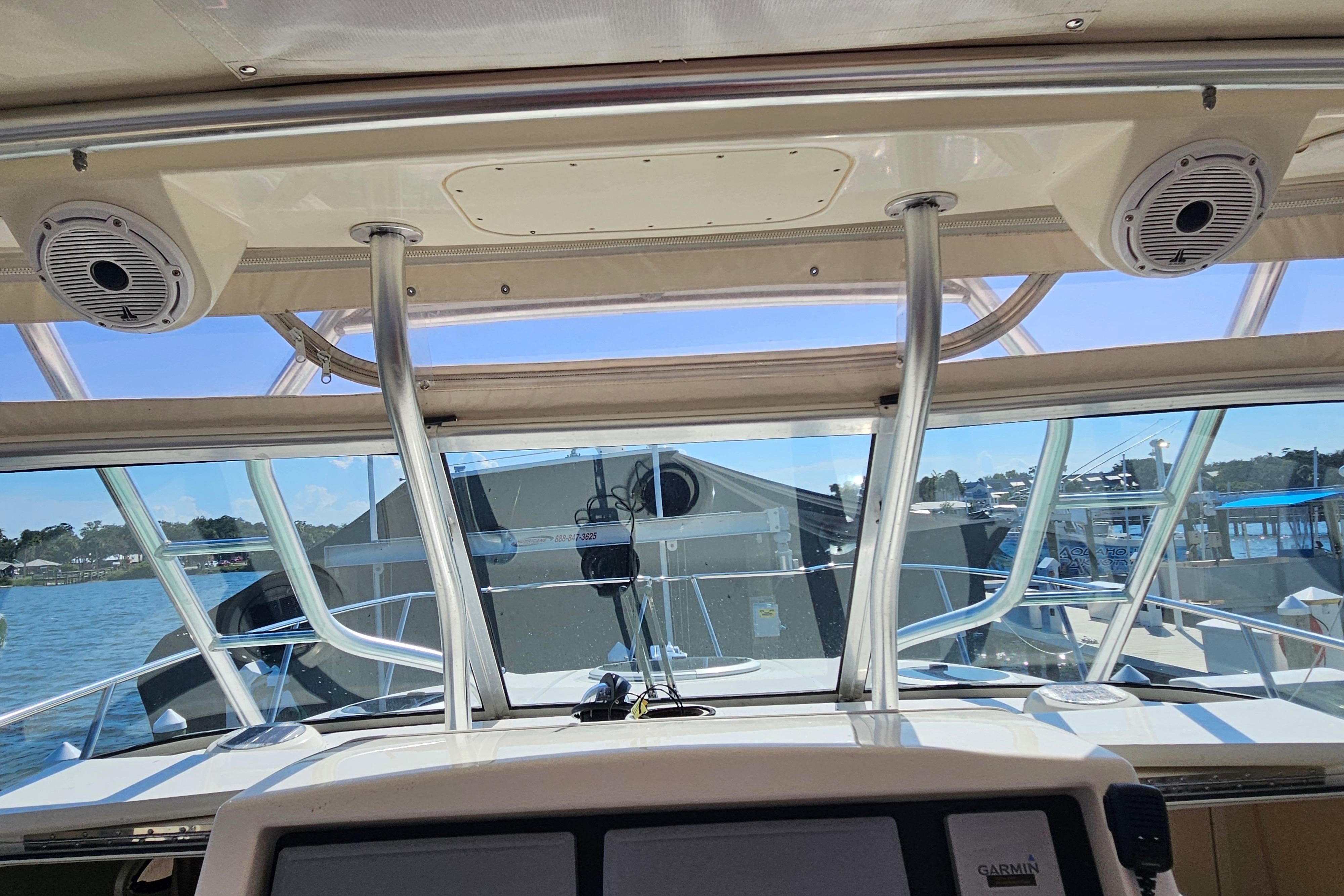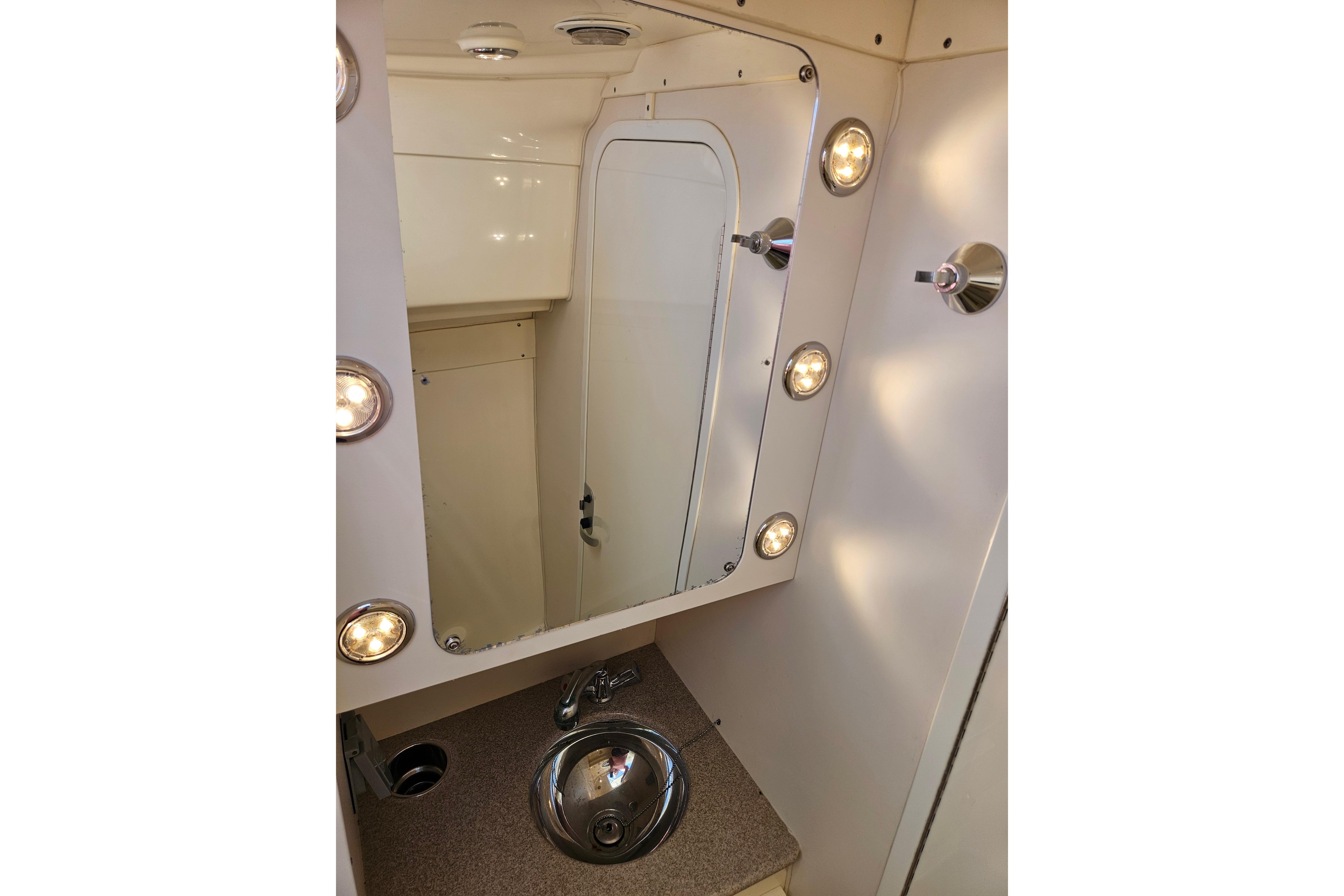 The 320EC express cabin is how World Cat is adding an element of luxury to offshore fishing. The helm is located on centerline, with port and starboard entry doors leading to the galley stand-up head. Both the galley and the head doors lead to the forward master stateroom with queen berth. Lots of lighting, port lights and hatches provide a bright and roomy feel to this cabinboat. The aft cockpit has 2 aft facing jump seats and 2 forward facing jump seats that fold away to expose an enormous fishing cockpit. A fuel capacity of 260 gallons will assure ample range. The 320EC’s 40-gallon insulated, lighted livewell with 1100-gph magnetic drive pump and starboard bait prep station with sink, cutting board and raw water faucet are proof World Cat has added an element of luxury to fighting fish.