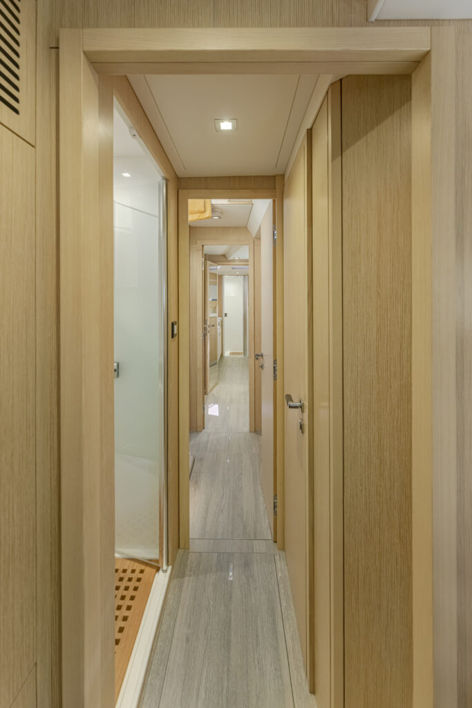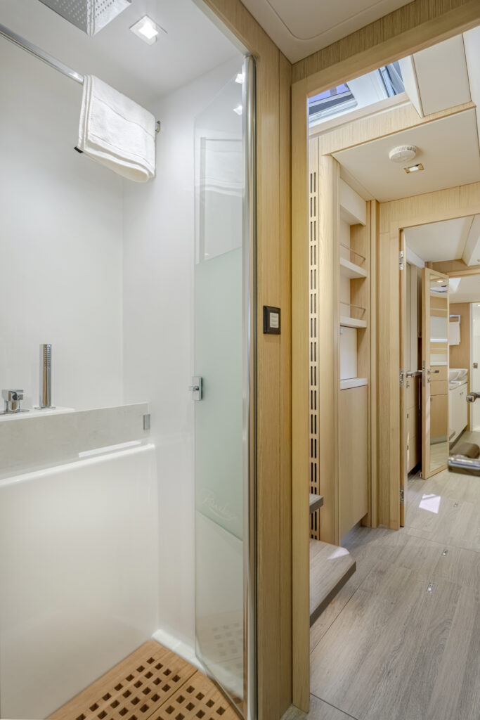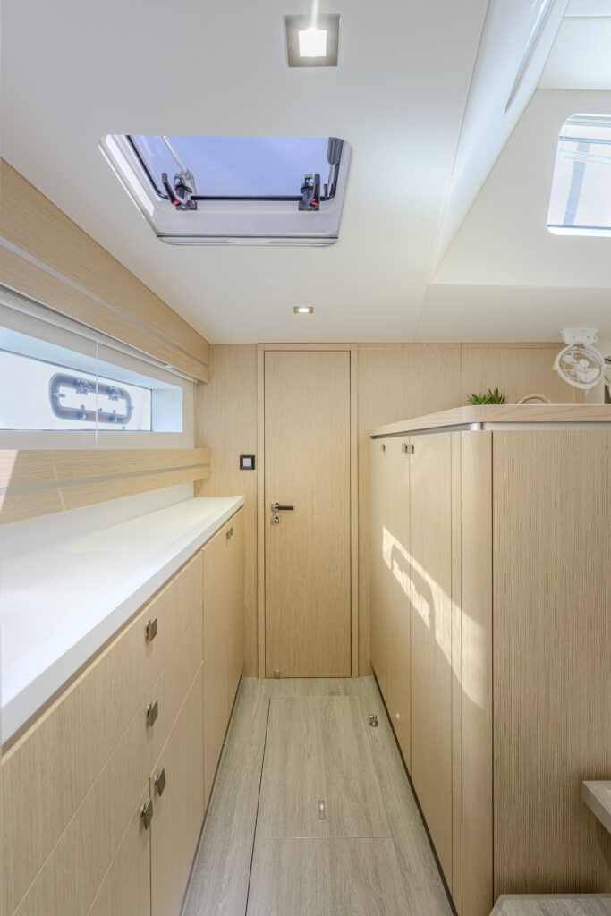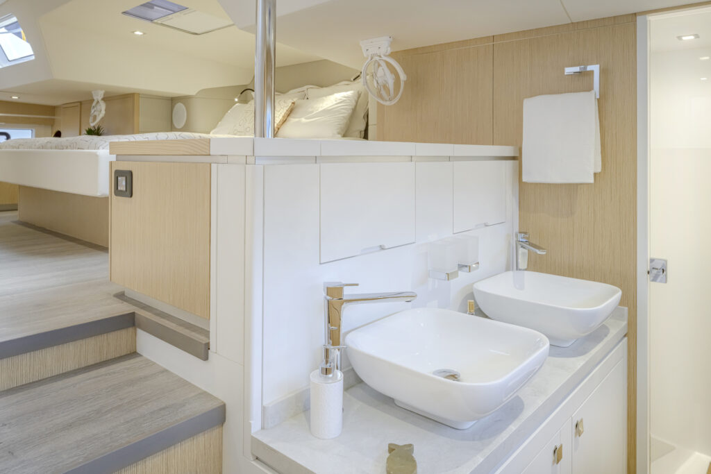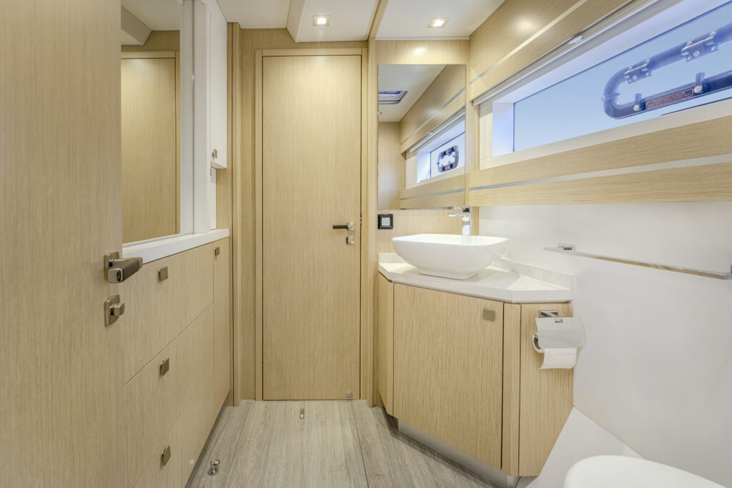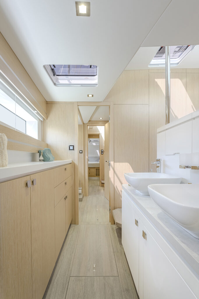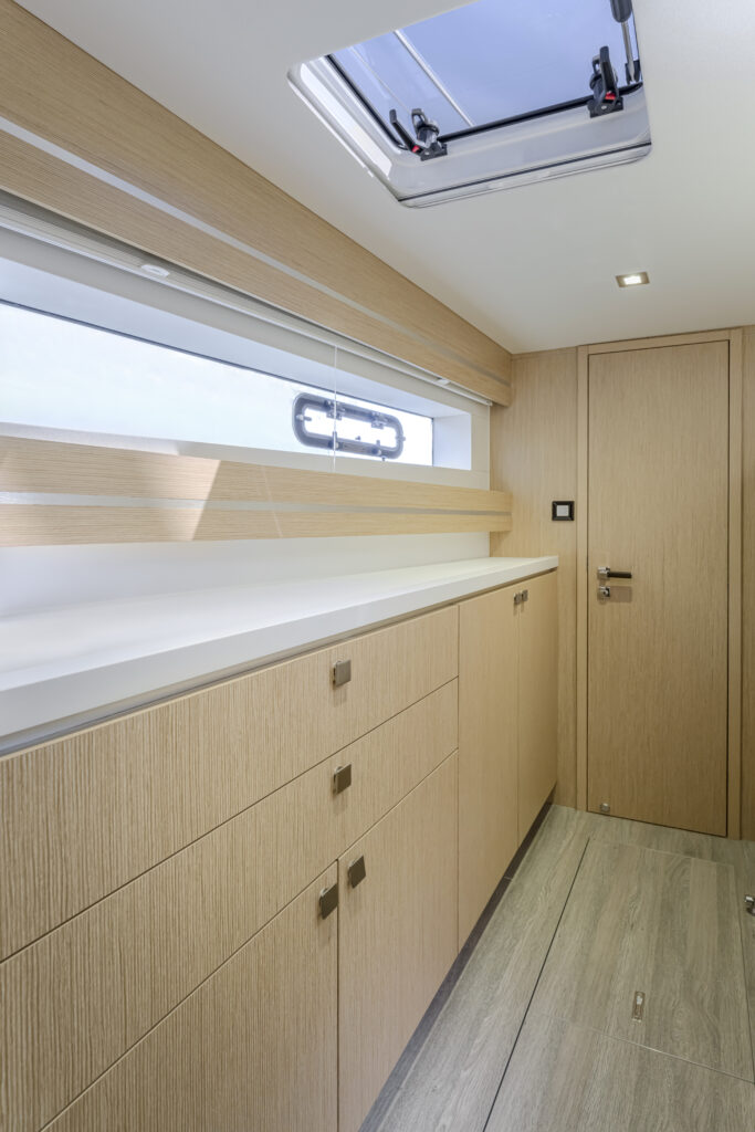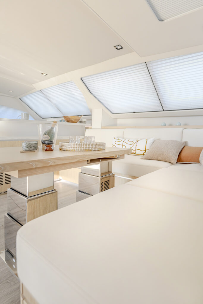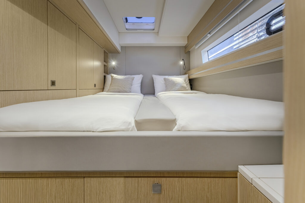 Privilège's interiors are designed by Franck Darnet, who is more accustomed to designing superyachts. You really feel that pedigree onboard, and nowhere more so than in the master cabin. Fine fabrics and immaculate joinery give a real sense of luxury.