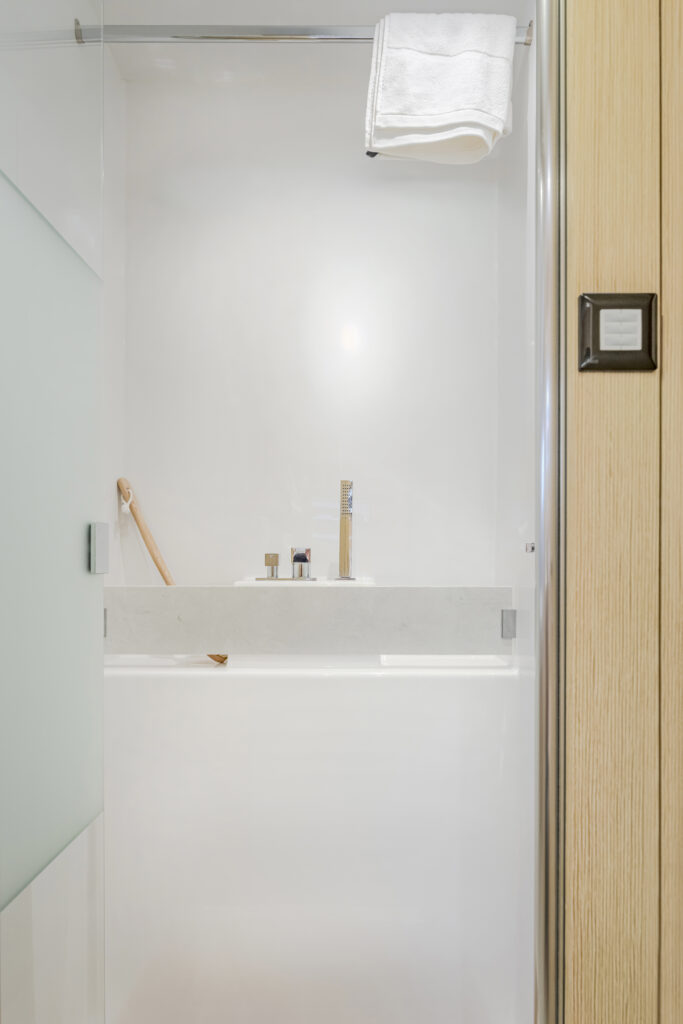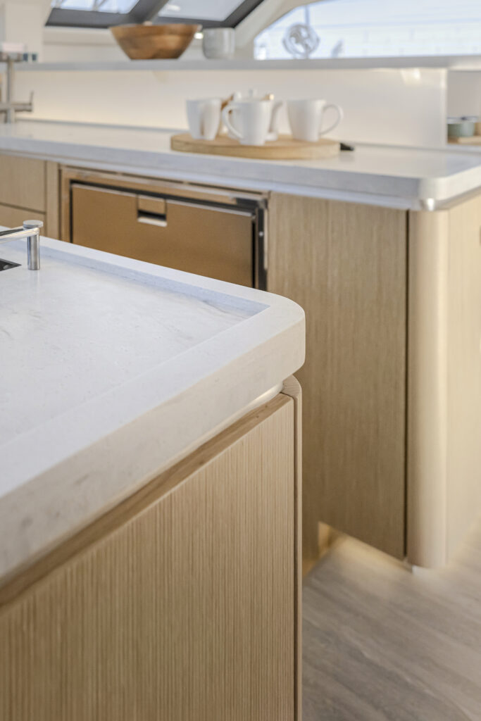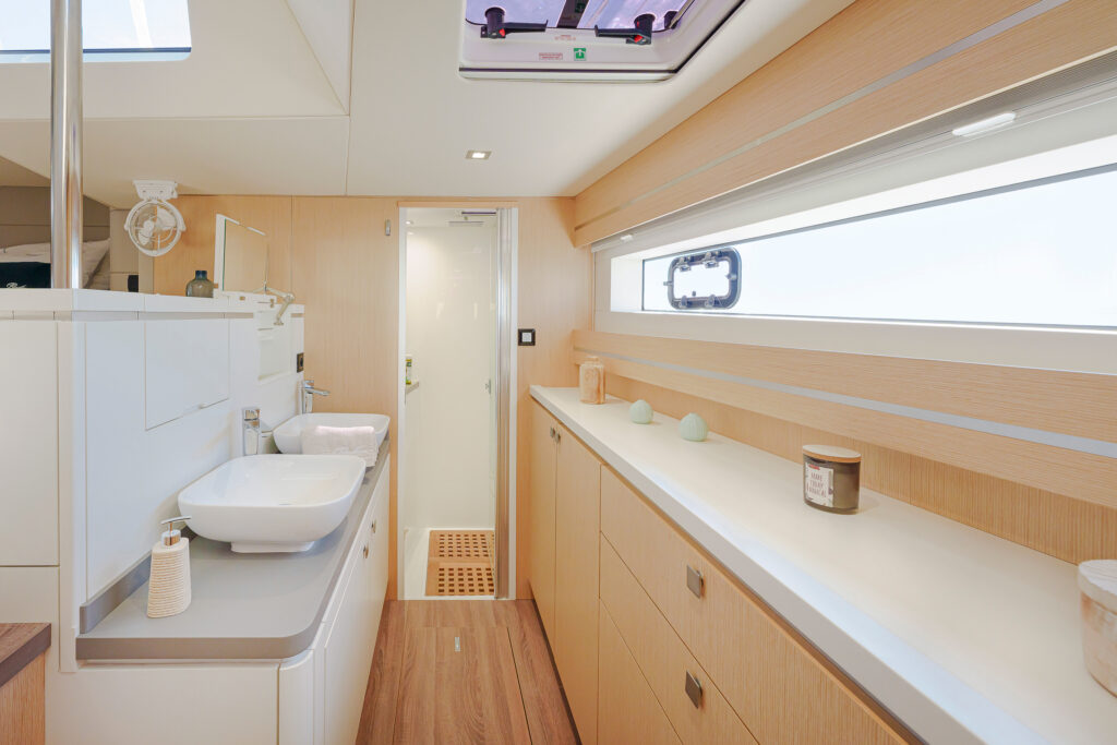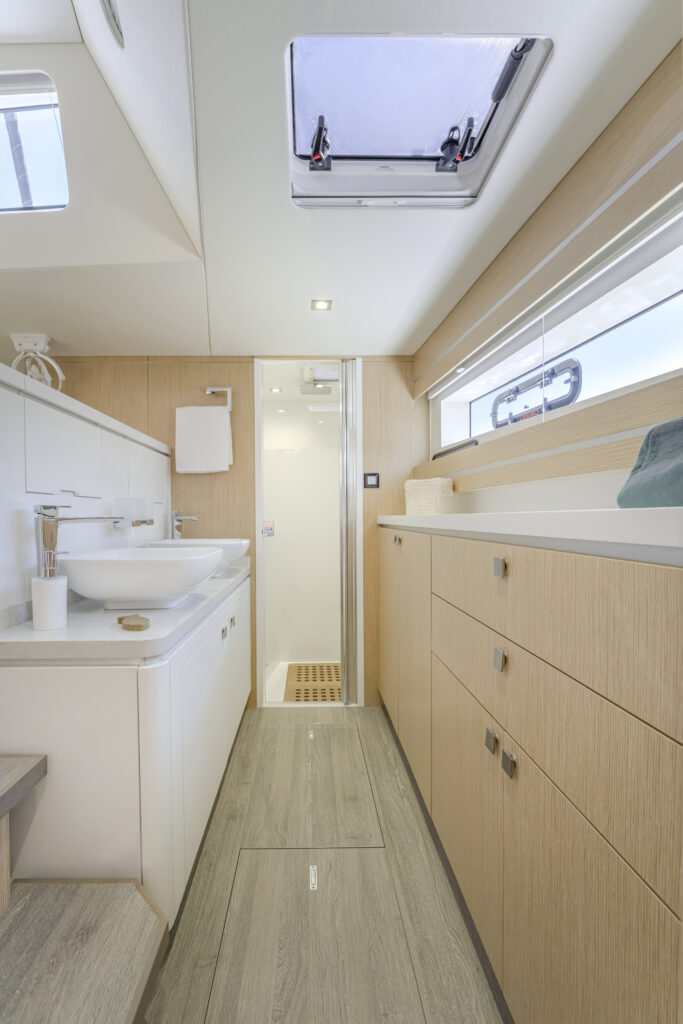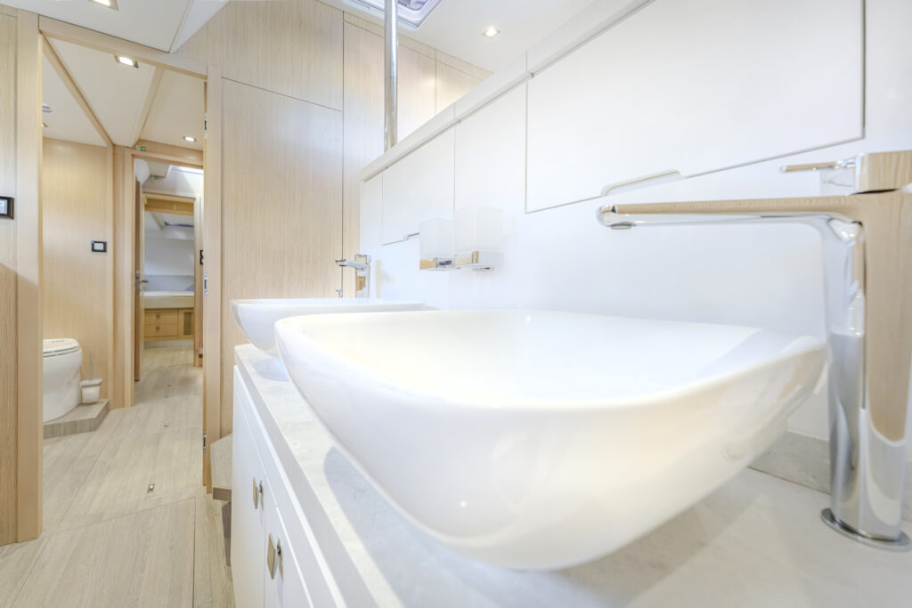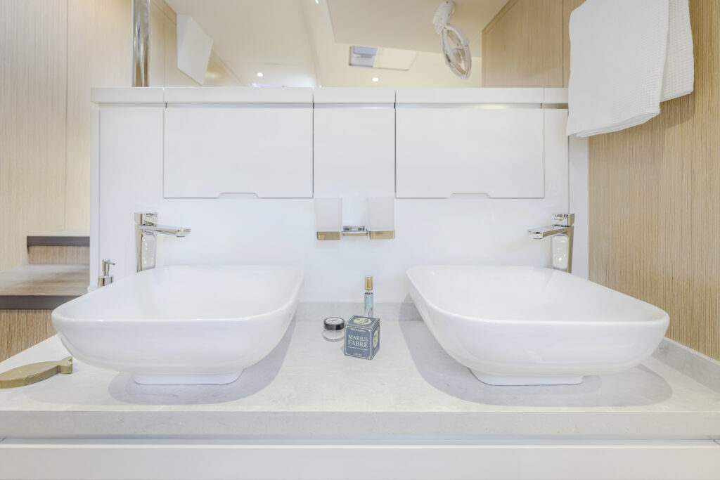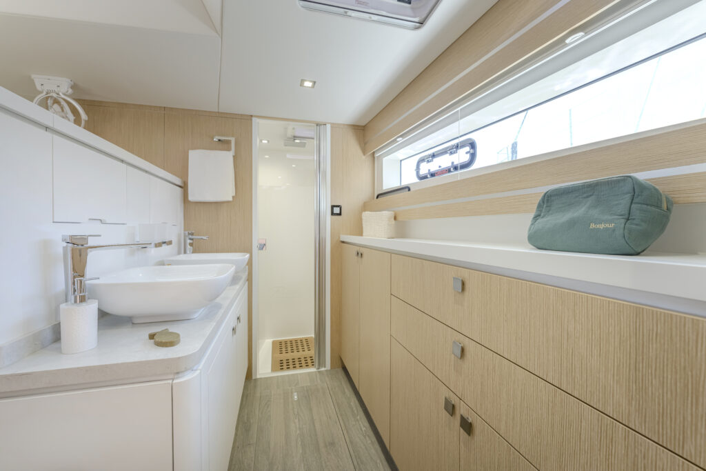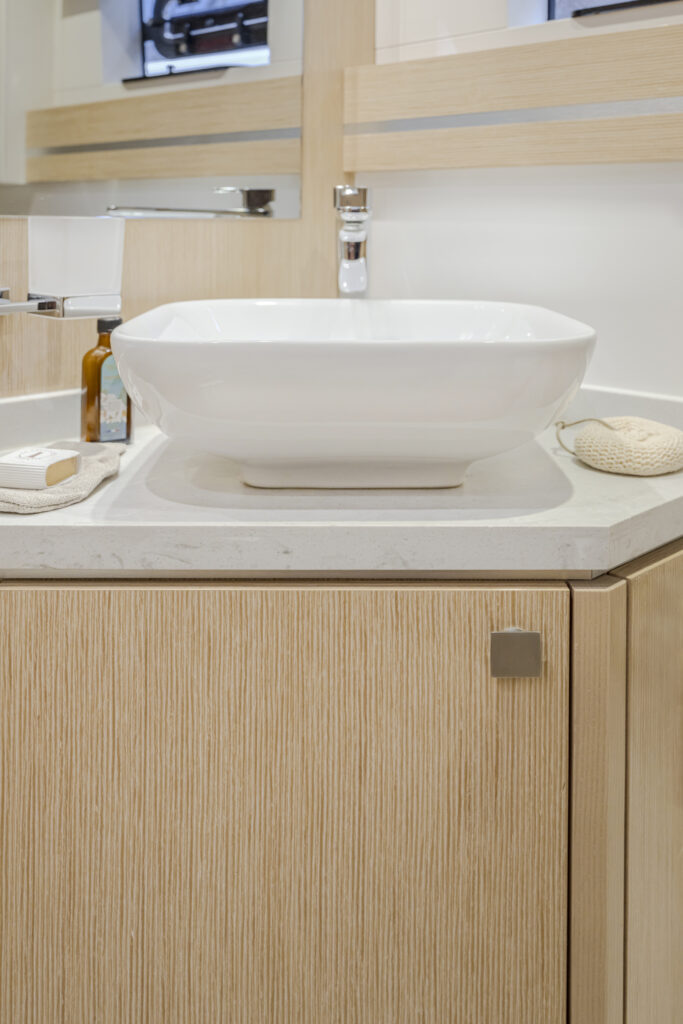 Privilège's interiors are designed by Franck Darnet, who is more accustomed to designing superyachts. You really feel that pedigree onboard, and nowhere more so than in the master cabin. Fine fabrics and immaculate joinery give a real sense of luxury.