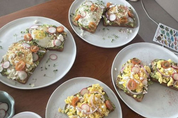 A daily assortment of coffee, tea, juices, local fruits, pastries. Fresh fruit smoothies made to order, available upon request.